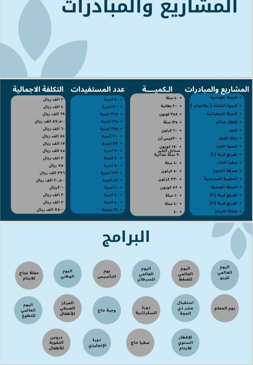 بسم الله الرحمن الرحيم قال تعالى:﴿ وقل أعملوا فسيرى الله عملكم ورسوله والمؤمنون﴾ أحمد الله تبارك وتعالى وأصلي وأسلم على خير خلقه سيدنا محمد وعلى آله وصحبه أجمعين .. أود بداية أشكر الله عز وجل إذ يسر وجود هذه الجمعية في هذا المكان الأكثر احتياجاً واسأل المولى العلي القدير أن يوفقنا جميعاً لخدمة الجمعية كونها اللبنة الأولى للعمل الخيري المنظم على مستوى مملكتنا الحبيبة. وتسعى الجمعية أن تعزز الأنشطة الاجتماعية و الخيرية و الثقافية عبر أهداف محددة كدعم برامج التنمية الاجتماعية والاقتصادية المستدامة، و المشاركة في وضع الخطط الإستراتيجية التنموية ، و إعداد وتنفيذ المشروعات التي تخدم أكثر فئات المجتمع حاجة بحسب أهميتها للناس، و تقديم الخدمات الاجتماعية للفئات المحتاجة والضعيفة، لإحداث التنمية الشاملة، و تحسين مستوى أداء الأفراد لتحقيق التنمية المستدامة، و المساعدة في توفير فرص التعليم للخريجين والعاطلين عن العمل،و ستعمل الجمعية على تحقيق هذه الأهداف الطموحة من خلال تعاونكم مع الجمعية ، ونسعى لتنظيم لقاءات وورش عمل تدريبية، ، وفعاليات اقتصادية واجتماعية وثقافية وإعلامية و تقصي الاحتياجات الاجتماعية للأفراد والمحتاجين من أبناء الطبقة الضعيفة ماديا، والعمل على تأهيلهم وإعدادهم للتكيف مع معطيات الحياة. كما أن الجمعية بصدد العمل على-العديد من المشاريع لمساعدة الفقراء والمحتاجين ونقلهم من حالة الاحتياج إلى حالة الاكتفاء أو الإنتاج ببرامج التعليم والأسر المنتجة والرعاية الصحية, وأشكر حكومتنا الرشيدة على ما توليه من رعاية وعناية بكل ما يحقق مستوى التنمية للفرد ولا يفوتني أن أشكر الأخوة الزملاء الذين سبق وأن بذلوا الكثير من الجهد في دورات المجلس السابقة جزاهم الله خيراً وجعل ذلك في ميزان حسناتهم . كما انتهز هذه المناسبة لأتقدم بالشكر لكل متبرع مهما كان تبرعه فلولا الله ثم تبرعاتهم لما كان هناك وجود لهذه الجمعية ، أسأل الله تعالى أن يضاعف لهم الأجر والمثوبة ويكسبهم رضاه ويوفقهم لمزيد من العطاء والبذل وفي الختام أدعو كل مقتدر في بلادنا الغالية أن يتبرع لهذه الجمعية بما تجود به النفس والله في عون العبد ما كان العبد في عون أخيه ونسأل الله أن نكون عند حسن ظن الجميع لخدمة المجتمع وأدعو الله عز وجل أن يعيننا على تحمل الأمانة، وأن يبلغنا آمالنا إنه سميع مجيب.